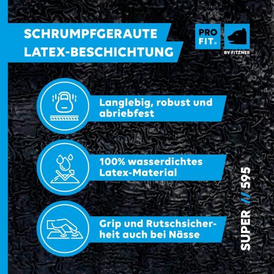 MaterialBeschichtung: schrumpfgerautes Latex, Trägermaterial: Polyester