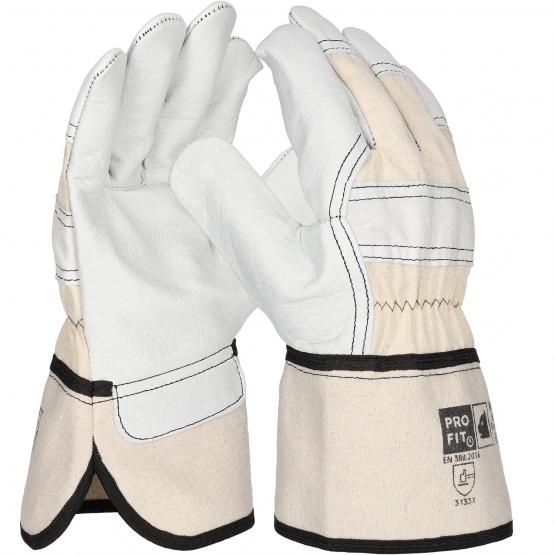 Rindvollleder-Handschuh Watt , natur/natur, Standard-Qualität, Materialstärke: ca. 1,1 mm, Innenhandfutter, Canvas-Stulpe, weich und flexibel, gute Passform, gute Abriebwerte
